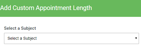 To set the appointment lengths for teachers of a specific subject choose the subject from the drop down under Select a Subject.