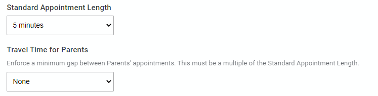 If the evening is being held in person, you can also set Travel Time for Parents which forces a gap between the appointments of a particular parent to allow them to move between appointments if needed.
