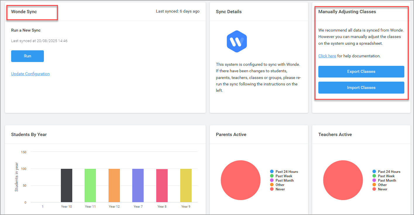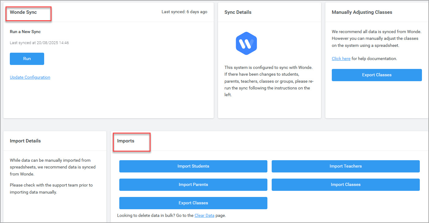 The following screenshot demonstrates how the settings appear when both options – Manual Data Import and Wonde Sync are selected.: